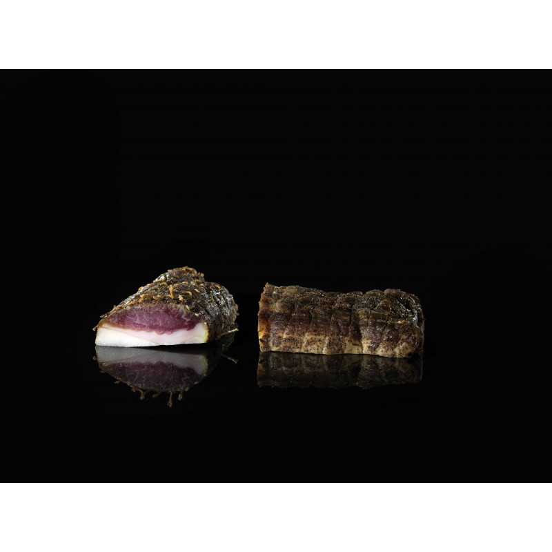 Nos Lonzi (filets de porcs), issus de nos cochons de la race Corse dite Nustrale sont élaborés à partir de morceaux maigres, c'est pour cela que les lonzi s'apparentent aux jambons. Nos Lonzi sont mis en sel parfumé suivant un procédé traditionnel puis aromatisés par un mélange d’épices. Ils sont ensuite embossés dans des boyaux de porc naturels puis affinés dans nos caves pour un minimum de 4 mois.