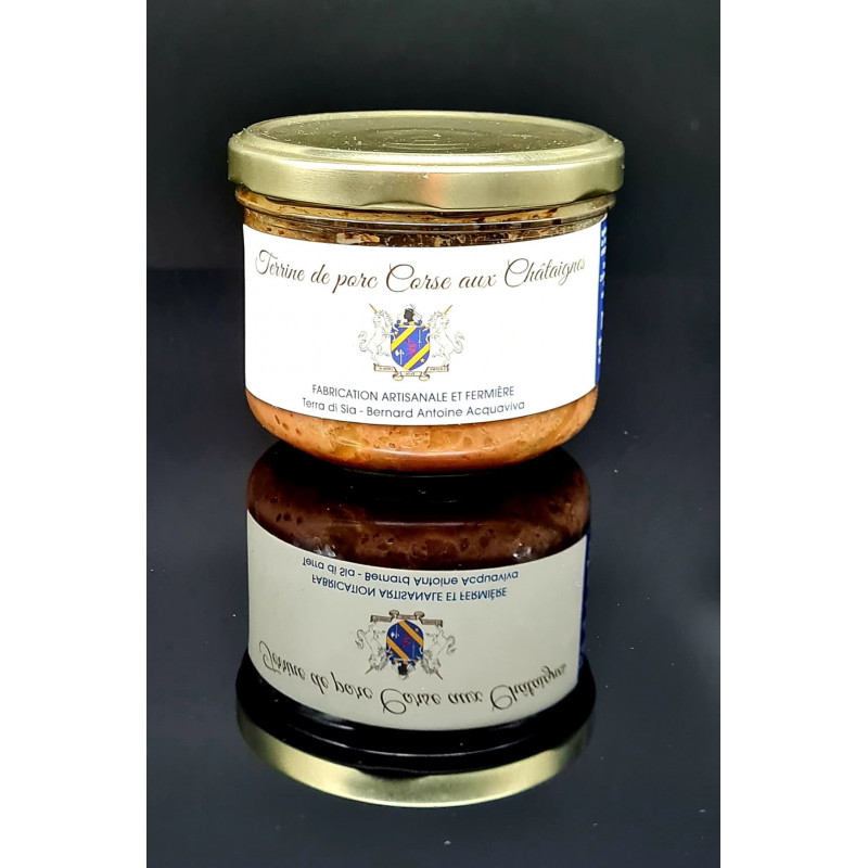 Notre terrine de porc corse à la Châtaigne est à déguster en apéritif ou en entrée. Savoureuse, gourmande, au parfum subtil et délicat de chataigne, issue de notre chataigneraie pluriseculaire, elle saura ravir vos papilles.
